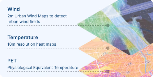 Access city-level weather models that deliver data with high spatial resolution up to 1 m, down to the neighbourhood or street level. This enables municipalities and infrastructure providers to make precise local decisions and assess microclimatic risks more accurately.