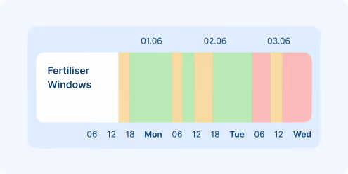 Apply nutrients efficiently to maximize their benefit to the crop.Our fertiliser windows identify periods with minimal runoff risk and ideal conditions for maximum absorption.