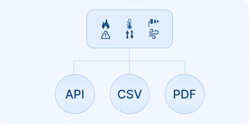 Export datasets, generate reports, or plug into analytics dashboards — all designed to streamline your client delivery process. Choose ready-to-use PDF reports , CSV data exports for multi-site assessments or API access for automation.
