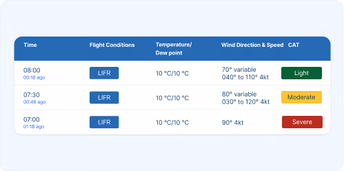 Enhance routing, dispatch, and airport operations with high-resolution aviation weather data - including wind, visibility, icing, turbulence, and other critical parameters to support safe and efficient operations.